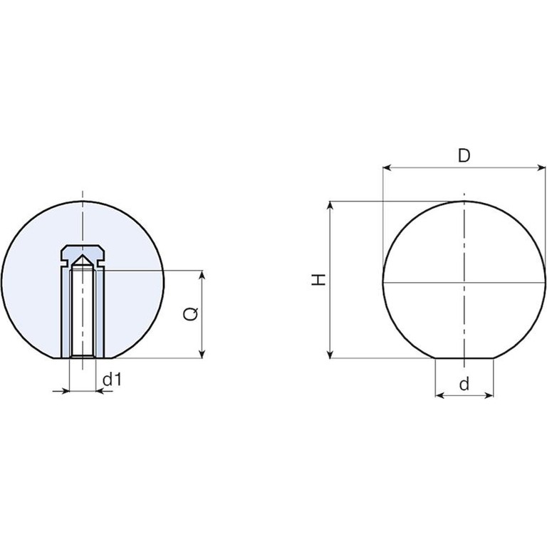 | Code | art. | D | H | d | d1 6H | Q | Gewicht (g) |