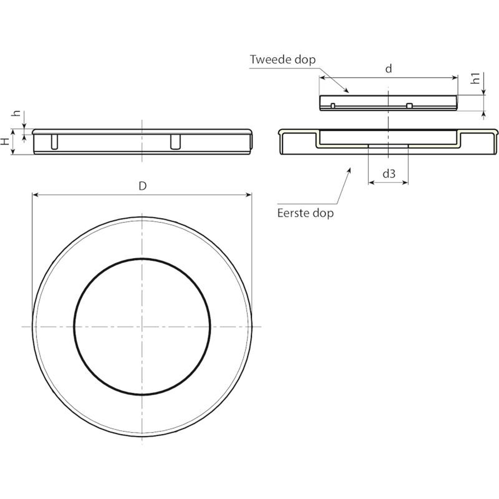 | Code | art. | D | d | d3 | H | h | h1 | Gewicht (g) |