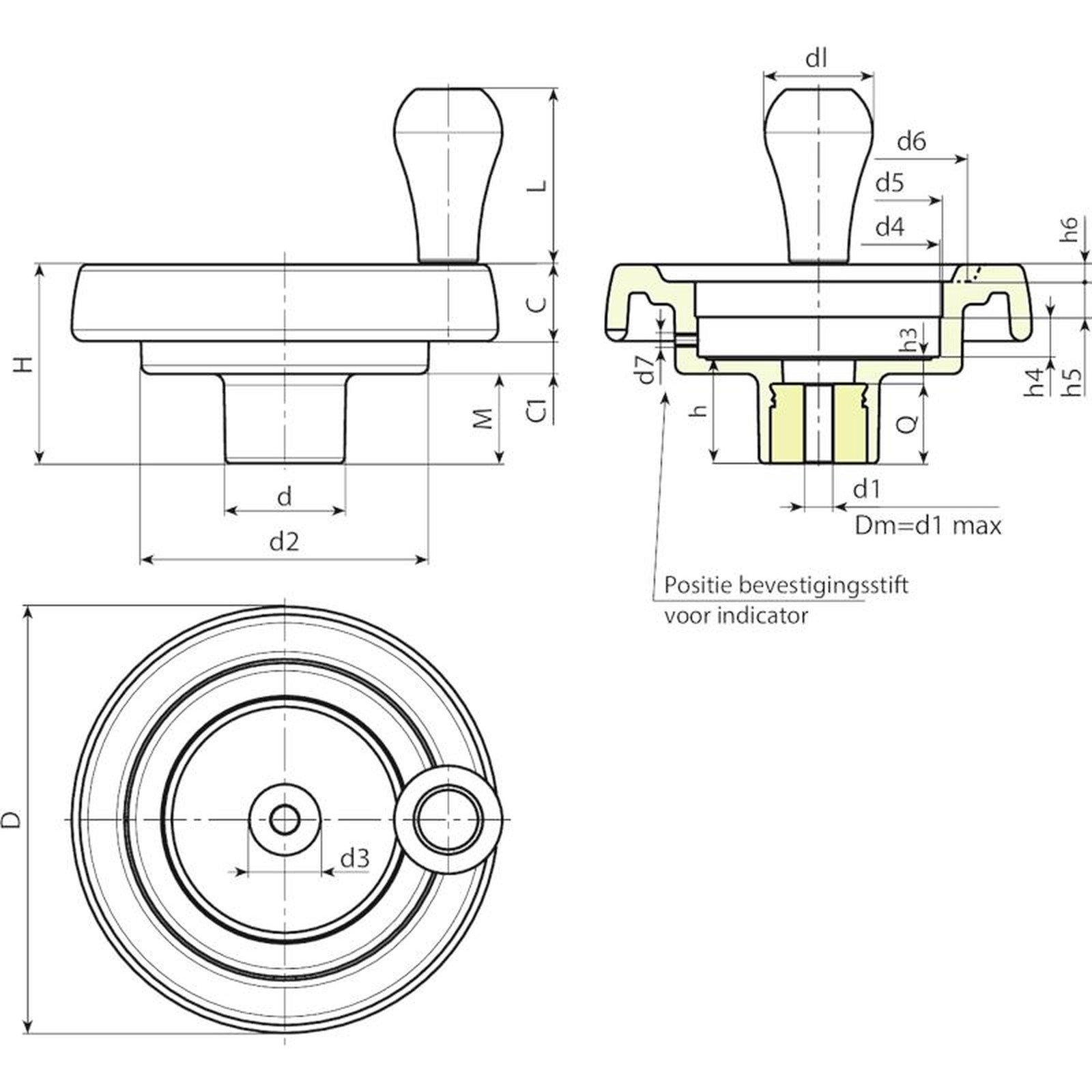 SCHIJFHANDWIEL MET ZITTING VOOR POSITIE-INDICATOR EN DRAAIBARE GREEP M202