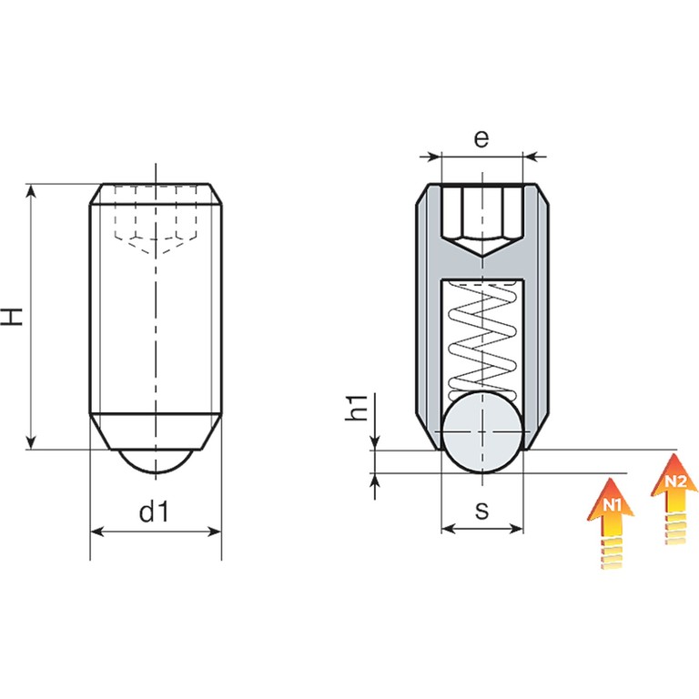 Code | art. | s | H | h1 | e | N1 (N) | N2 (N) | d1 6H | Gewicht (g) |