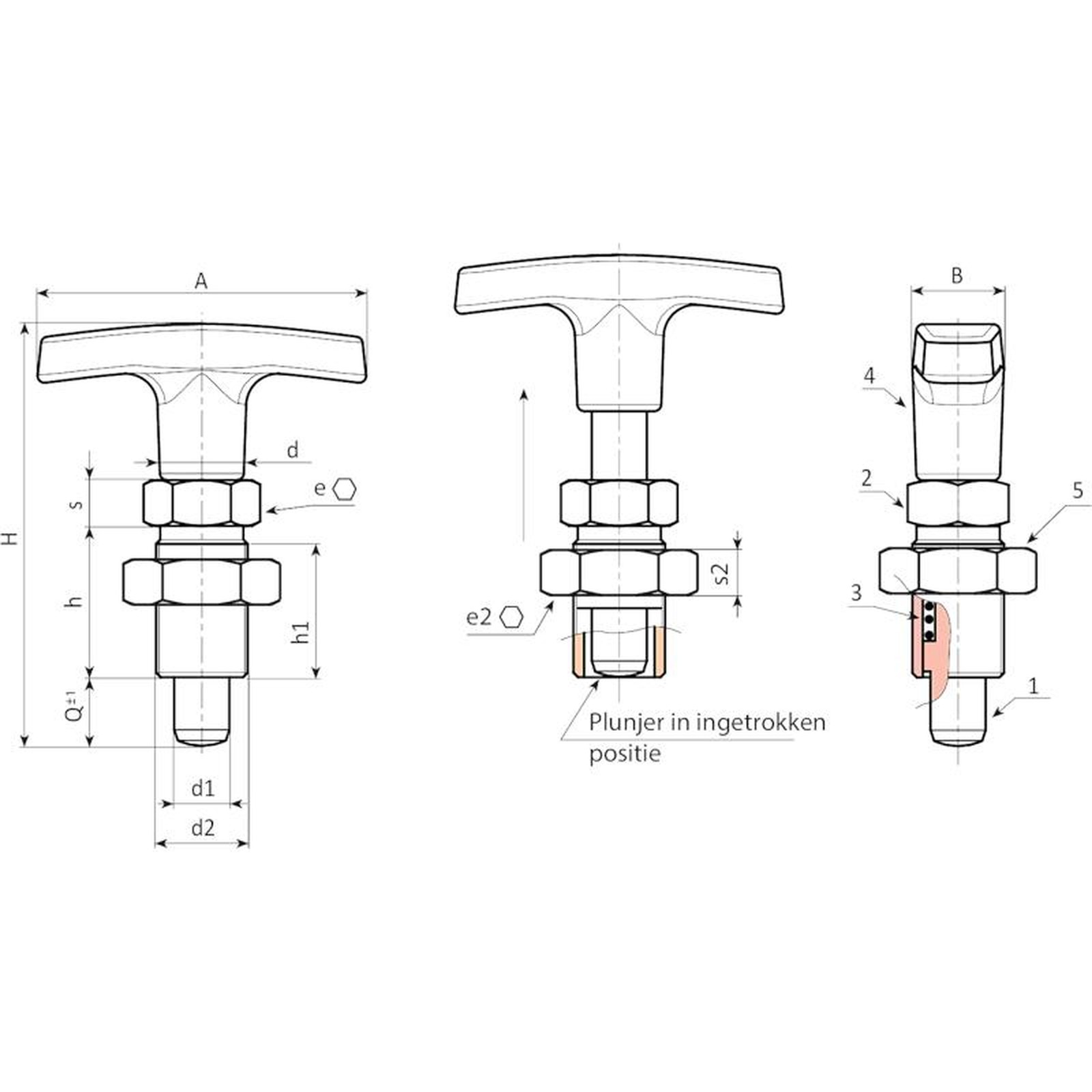 > Wij raden een tolerantie van H7 aan voor de boring van de zitting van de blokkeerboutstang.
