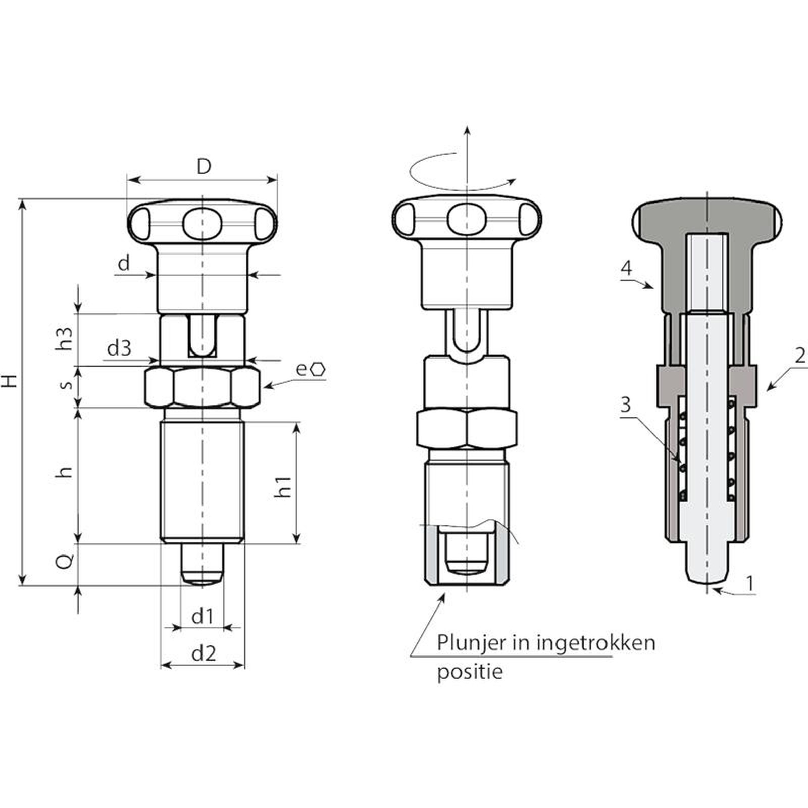 > Wij raden een tolerantie van H7 aan voor de boring van de zitting van de blokkeerboutstang.