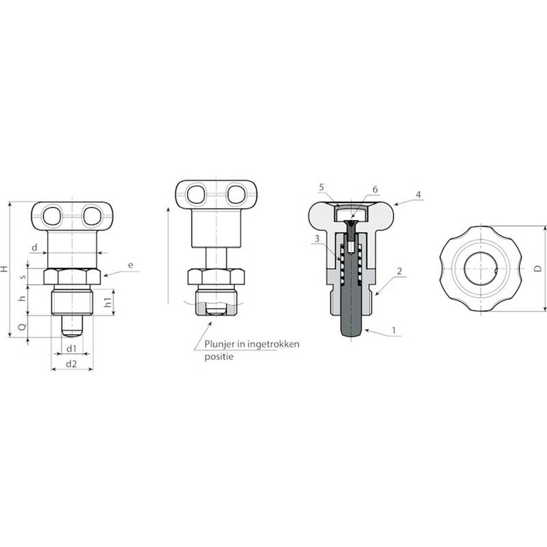 | Code | Art. | D | H | h | h1 | d2 | d | e | s | d1 -0,02 -0,04 | Q | Gewicht (g) |