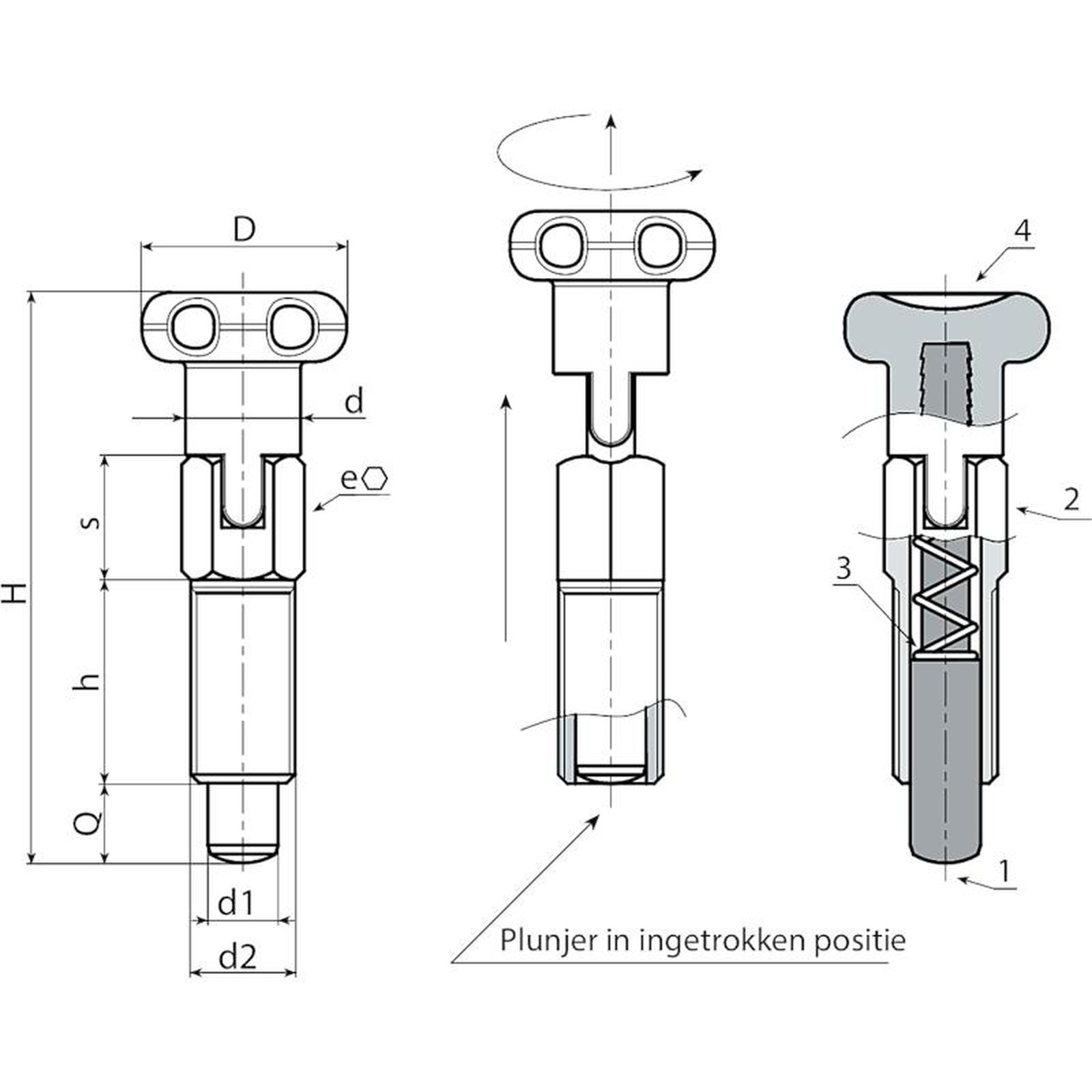 > Wij raden een tolerantie van H7 aan voor de boring van de zitting van de blokkeerboutstang.