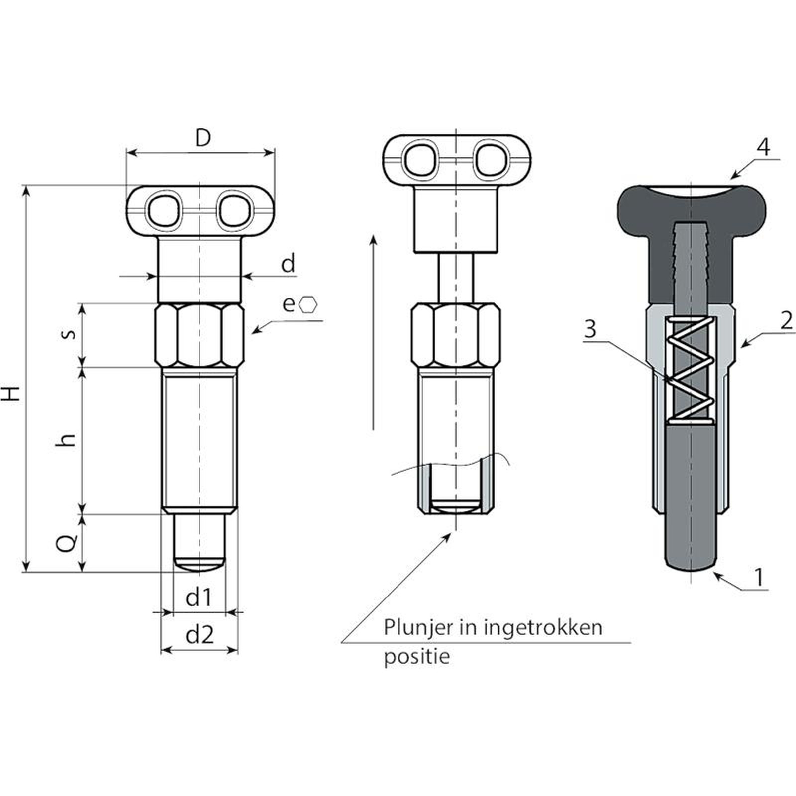 > Wij raden een tolerantie van H7 aan voor de boring van de zitting van de blokkeerboutstang.
