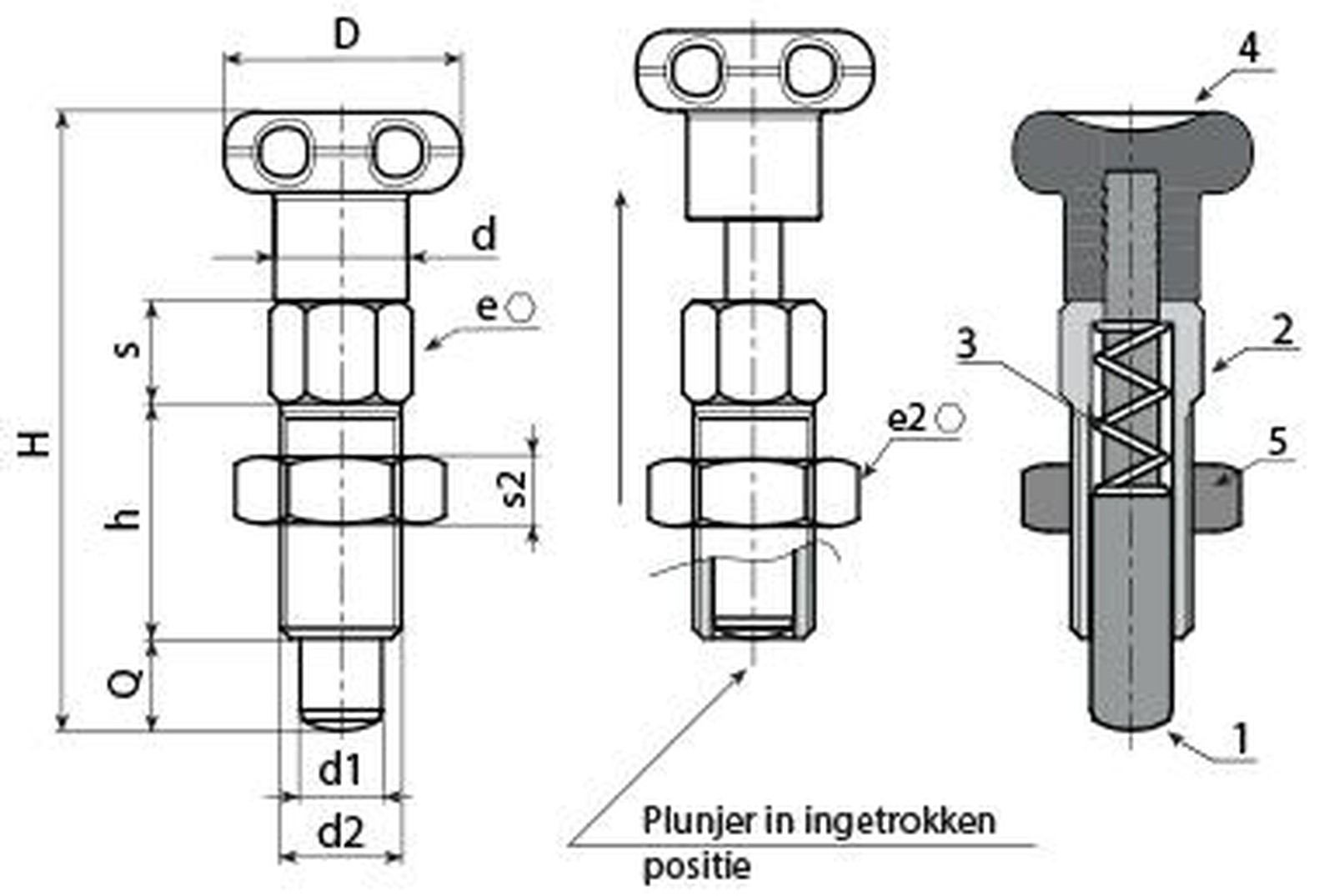 > Wij raden een tolerantie van H7 aan voor de boring van de zitting van de blokkeerboutstang.