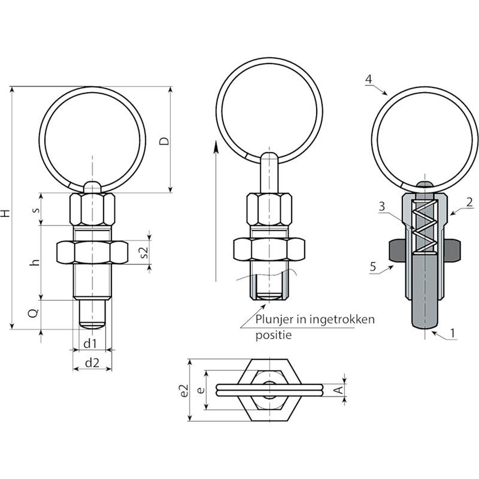 > Wij raden een tolerantie van H7 aan voor de boring van de zitting van de blokkeerboutstang.