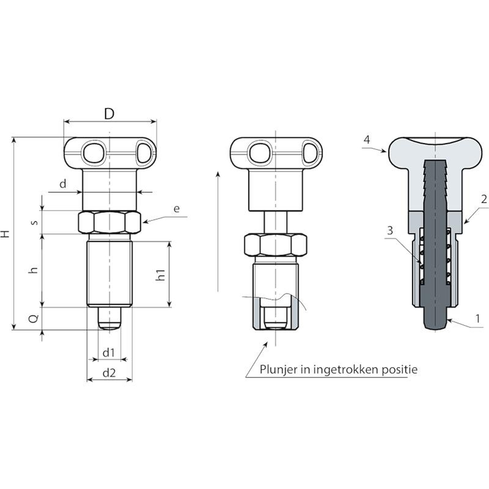> Wij raden een tolerantie van H7 aan voor de boring van de zitting van de blokkeerboutstang.