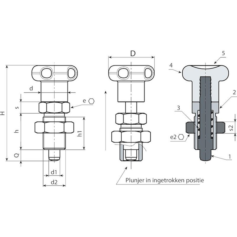 > Wij raden een tolerantie van H7 aan voor de boring van de zitting van de blokkeerboutstang.