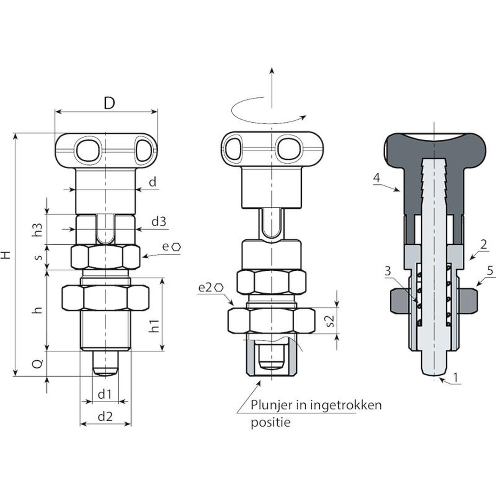 > Wij raden een tolerantie van H7 aan voor de boring van de zitting van de blokkeerboutstang.