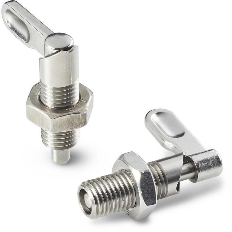 (2) Gedraaid en getapt lichaam in RVS (AISI 303) met hoge sterkteklasse, met borgzitting.