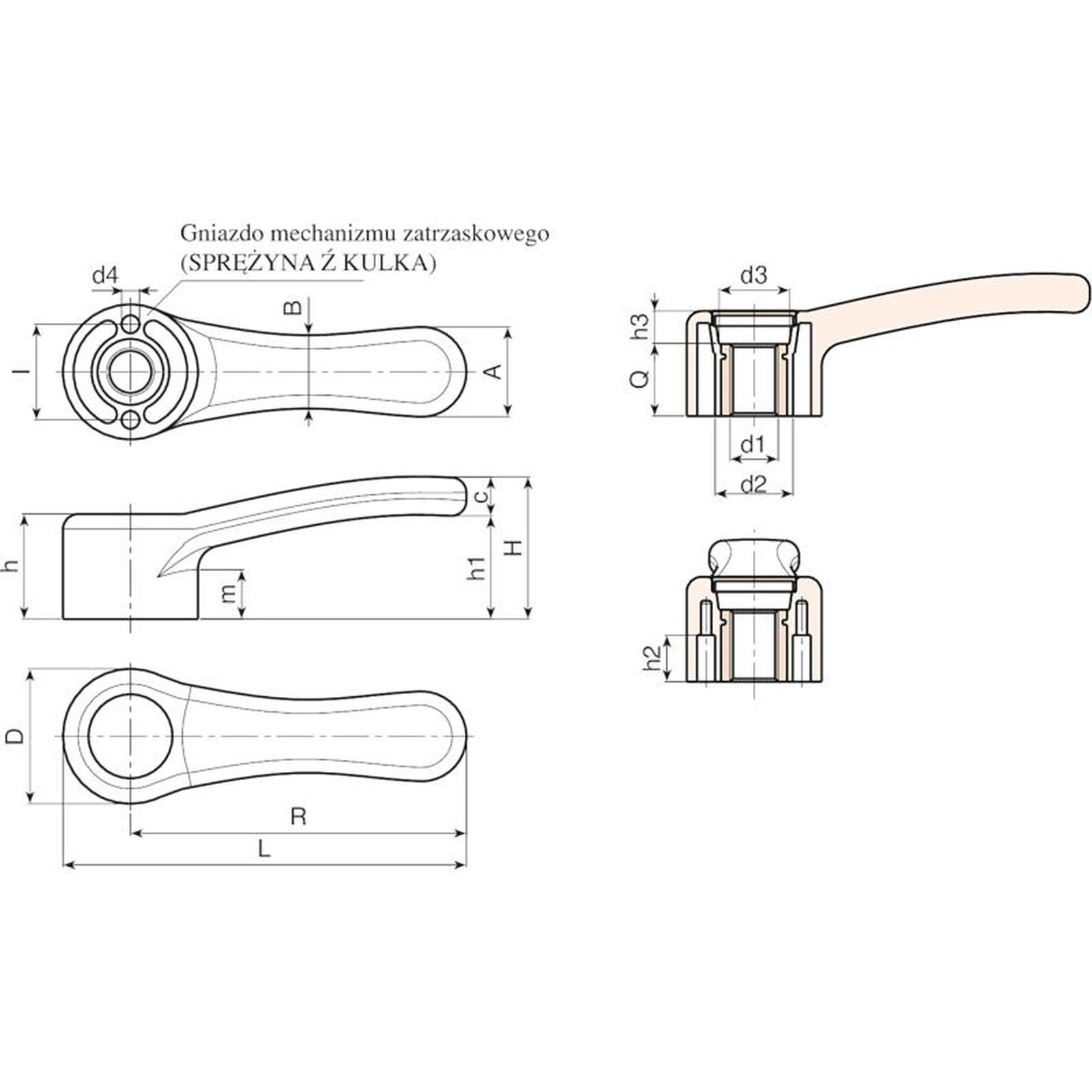 | Kod | Art. | L | R | D | H | h | h1 | h2 | h3 | m | I | A | B | c | d2 | d3 | d4 | d1 6H | Q | Waga (g) |