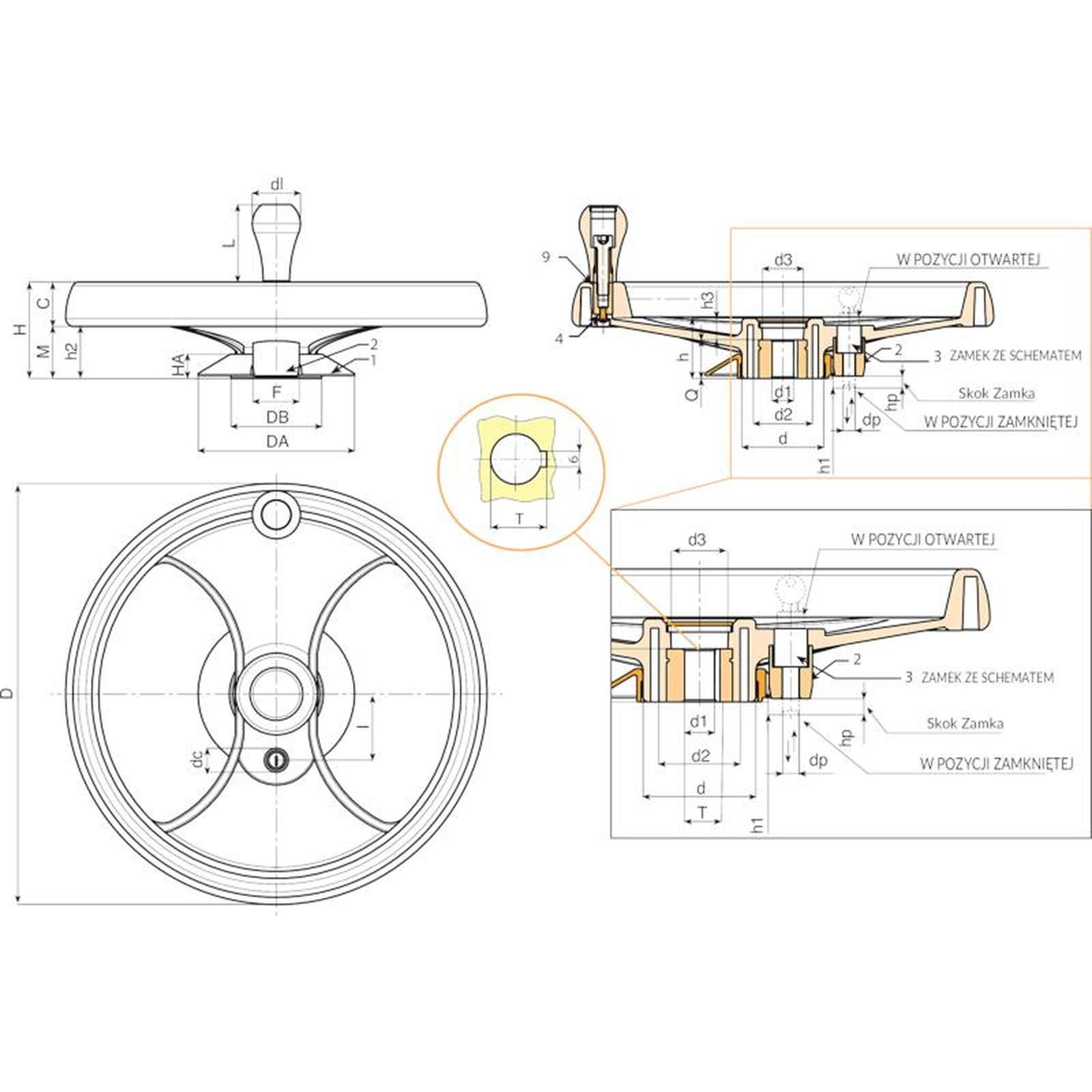 2-RAMIENNE KOŁO RĘCZNE Z OBROTOWĄ RĘKOJEŚCIĄ I ZAMKIEM BLOKUJĄCYM