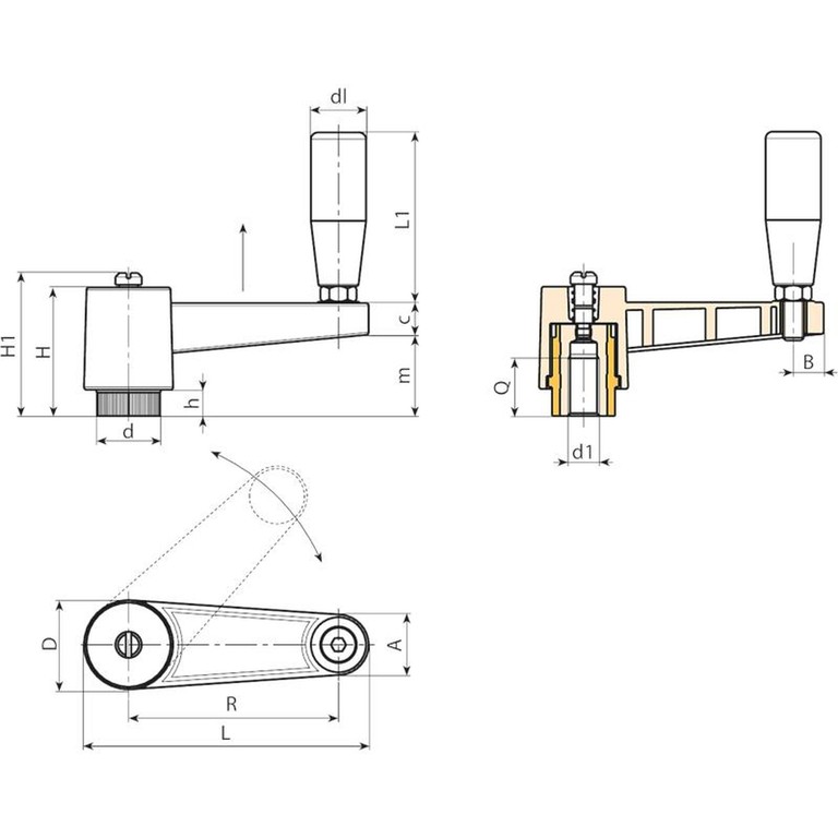 | Kod | Art. | L | R | H | D | d | m | c | A | B | h | H1 | d1 6H | Q | dl | L1 | Waga (g) |