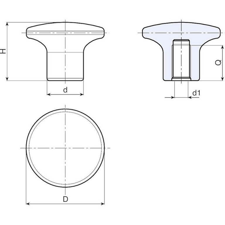 | Kod | art. | D | H | d | d1 | Q | Waga (g) |