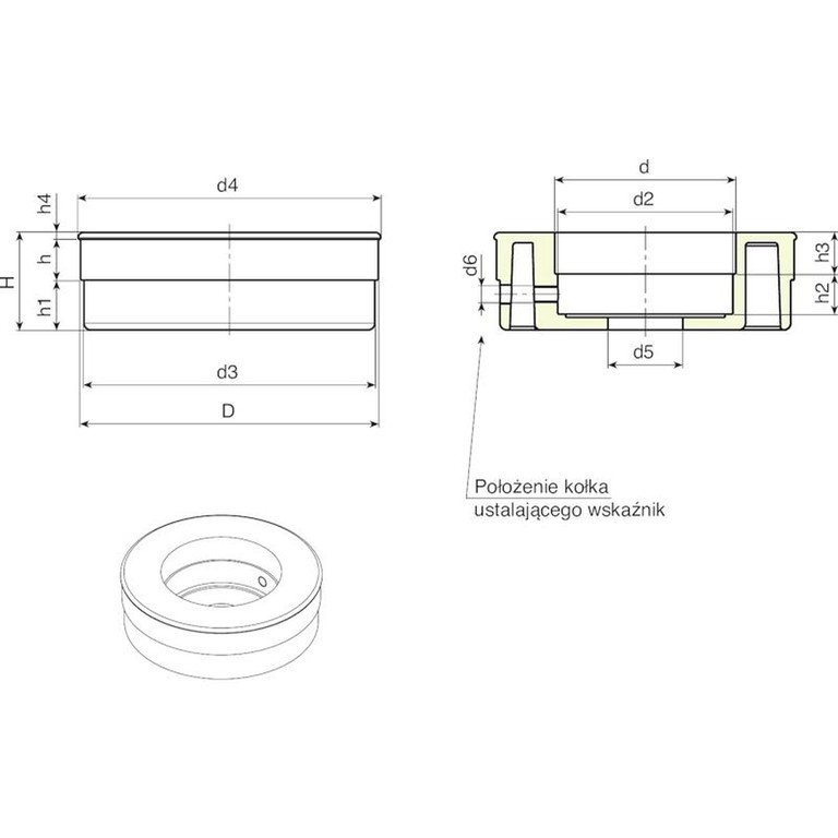 | Kod | art. | D | d | d2 | d3 | d4 | d5 | d6 | H | h | h1 | h2 | h3 | h4 | Waga (g) |