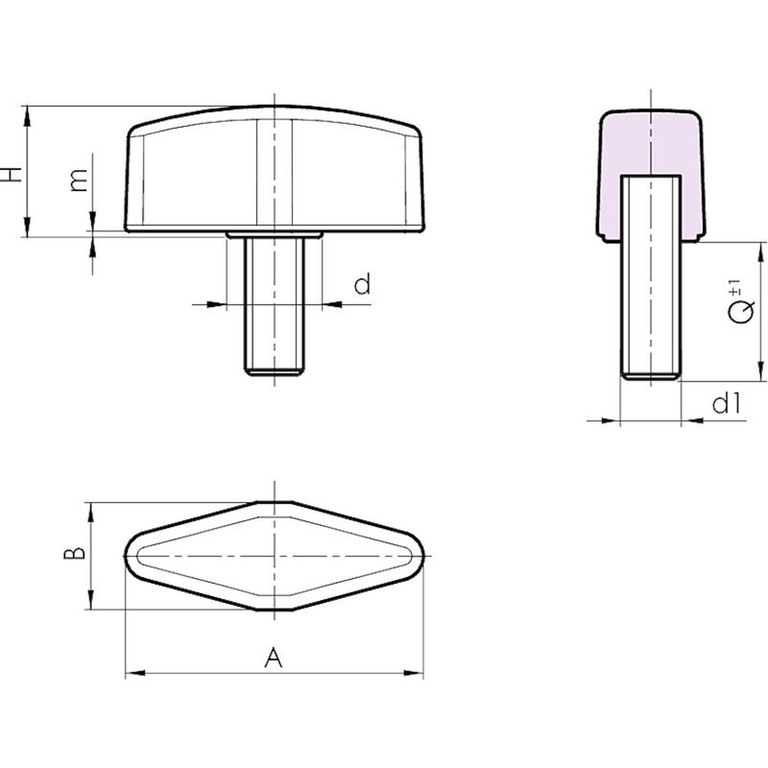 | Kod | Art. | A | B | H | m | d | d1 6g | Q | Waga (g) |