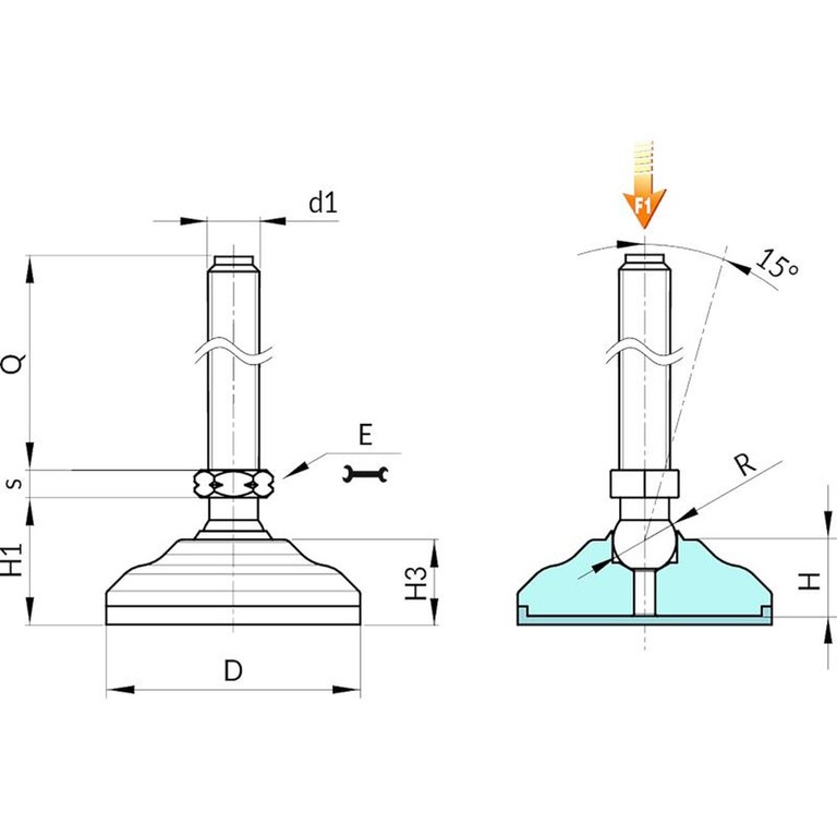 | Kod | Art. | D | H | H1 | H3 | E | s | R | d1 6g | Q | Waga (g) | F1_(kN) |