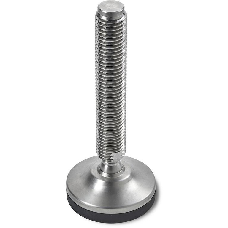 Wersja P543CIN: Stopka ze stali INOX - z trzpieniem typu B (z frezowanym gniazdem pod klucz) i kulką 15 - z podstawą antypoślizgową z TPV