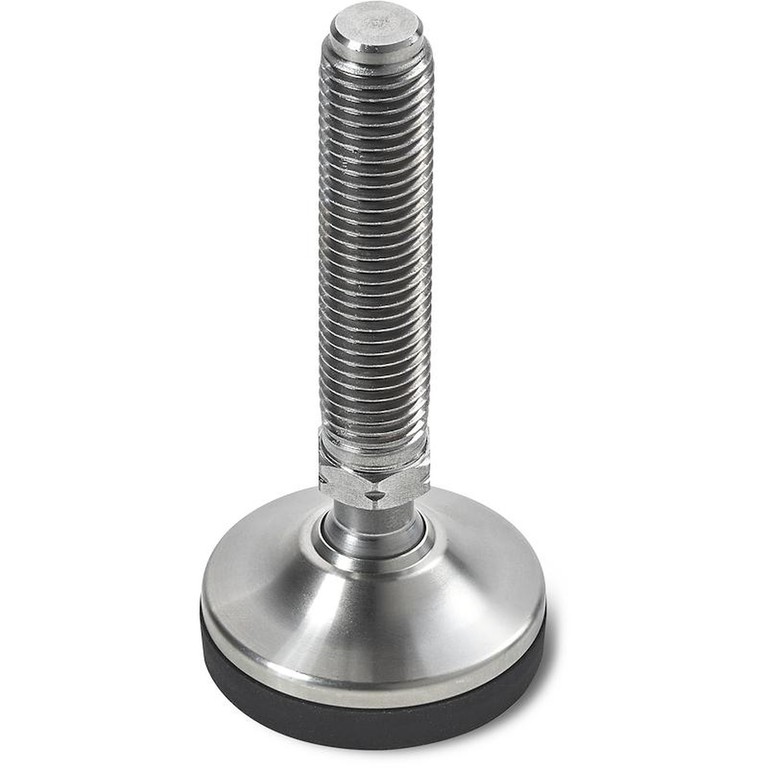 Wersja P544CIN: Stopka podporowa ze stali INOX - z trzpieniem typu A (z sześciokątem) i kulką 24 - z podstawą antypoślizgową z TPV