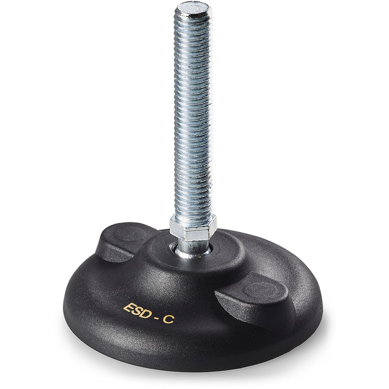 STOPKA PODPOROWA Z MOCOWANIEM DO PODŁOŻA - WYKONANA Z MATERIAŁU ESD - Z PRZEGUBOWYM TRZPIENIEM TYPU A ZE STALI ORAZ Z KULĄ 12,4