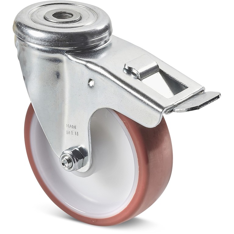 KOŁO Z POLIAMIDU / POLIURETANU Z OKRĄGŁĄ PŁYTKĄ OBROTOWĄ ZE STALI I GŁADKIM OTWOREM PRZELOTOWYM – Z HAMULCEM