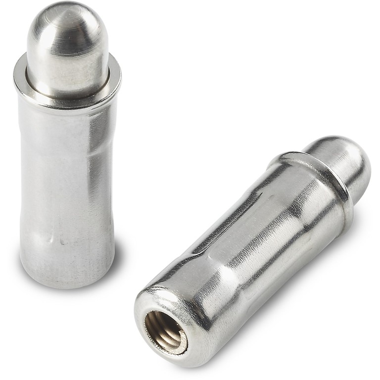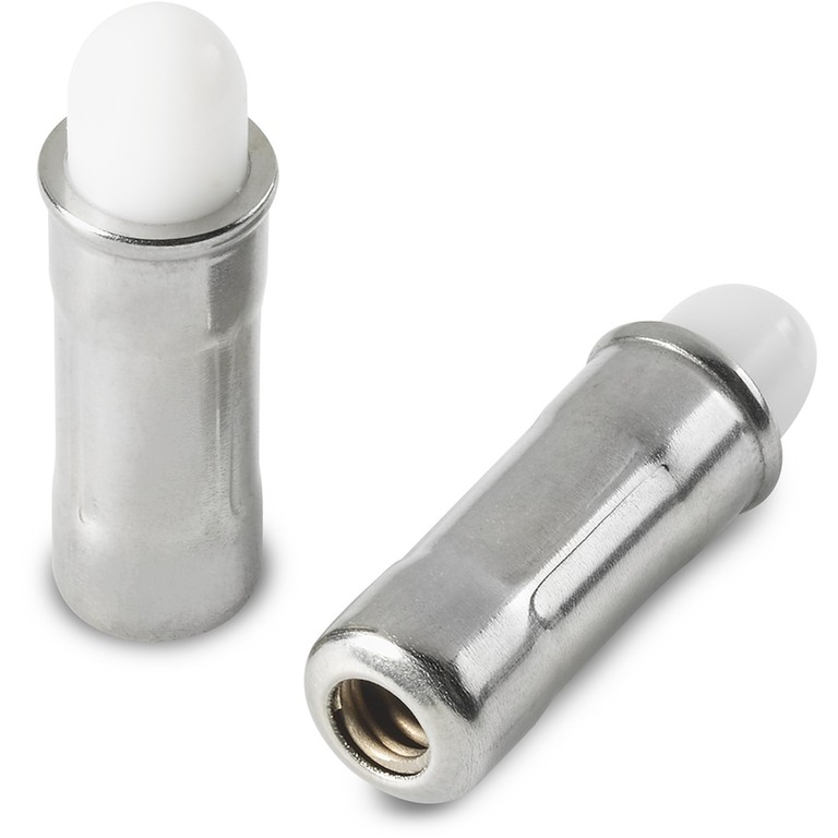 TRZPIEŃ DOCISKOWY GŁADKI ZE STALI INOX Z CZOPEM ZE SZTUCZNEGO TWORZYWA LUB ZE STALI