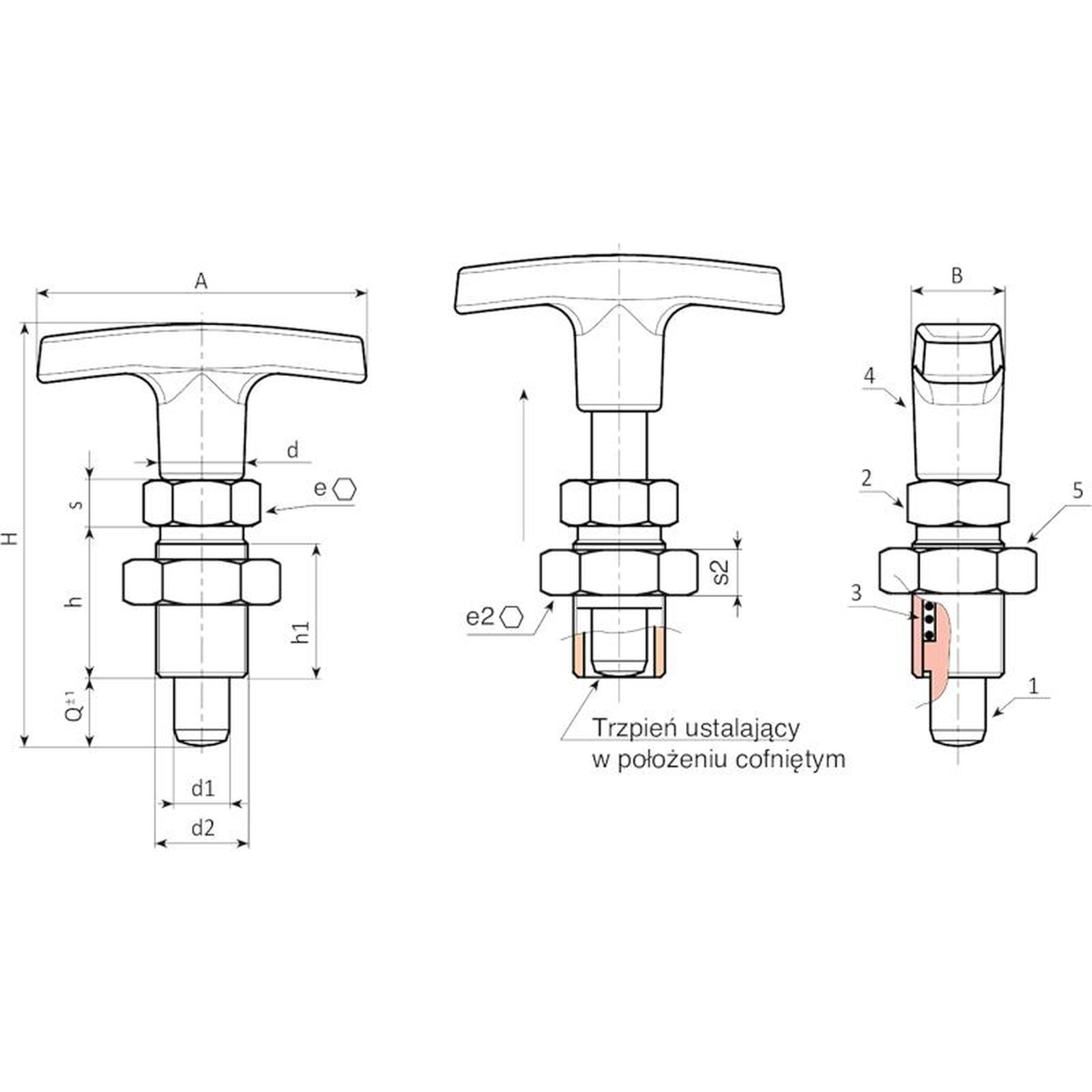 UCHWYTY TYPU T Z TRZPIENIEM USTALAJĄCYM ZE STALI I PRZECIWNAKRĘTKĄ