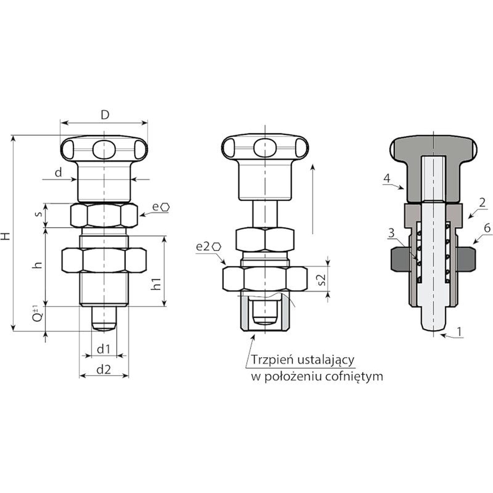POKRĘTŁO Z GWINTOWANYM TRZPIENIEM USTALAJĄCYM Z INTEGRALNEJ STALI INOX – Z I NAKRĘTKI