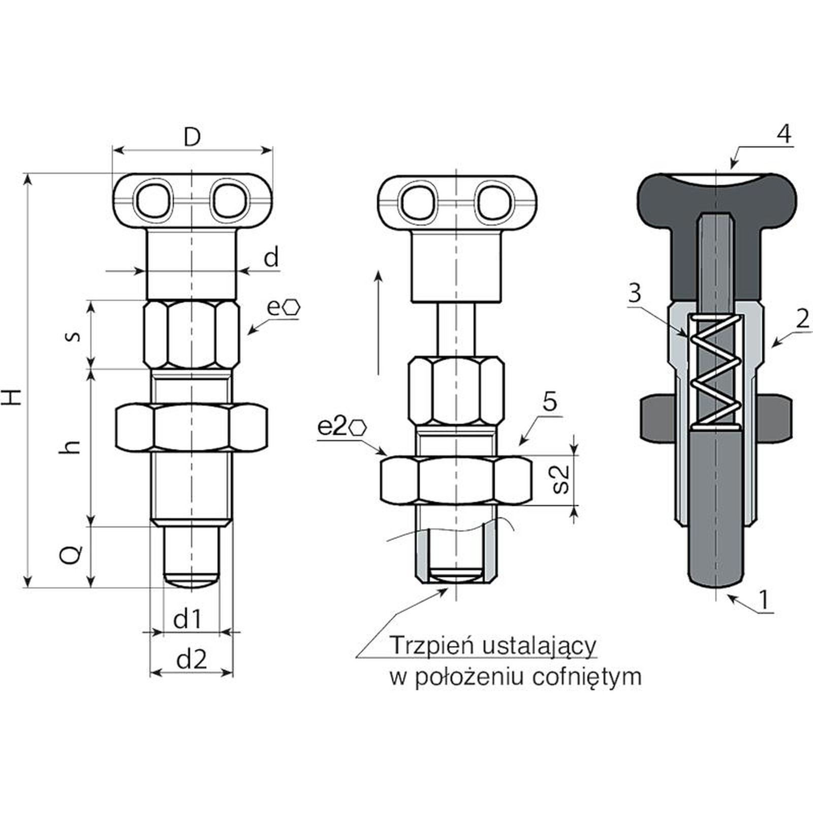 Trzpienie ustalające gwintowane o dużym skoku – stal inox integralna
