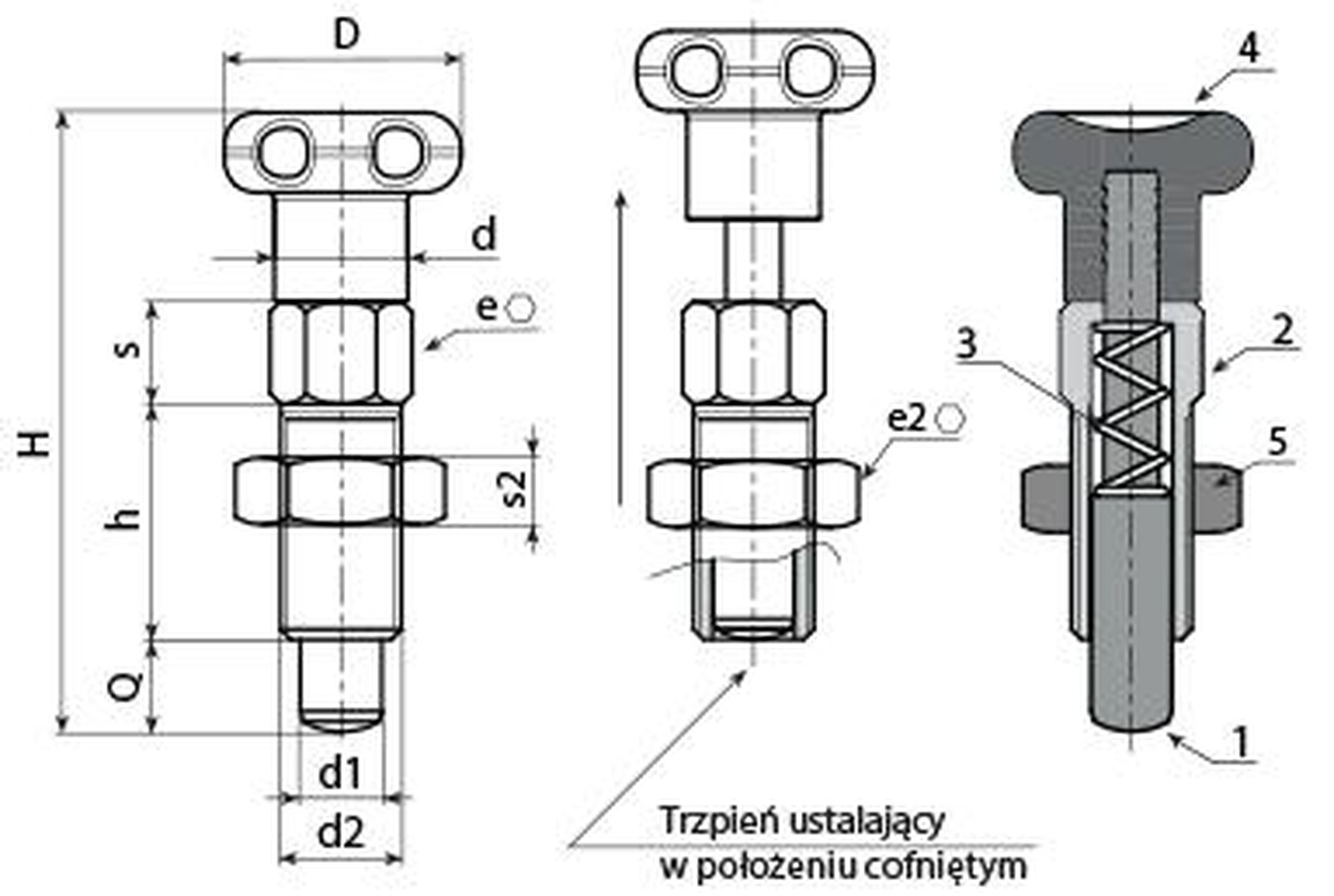 Trzpienie ustalające gwintowane o dużym skoku – z gałką