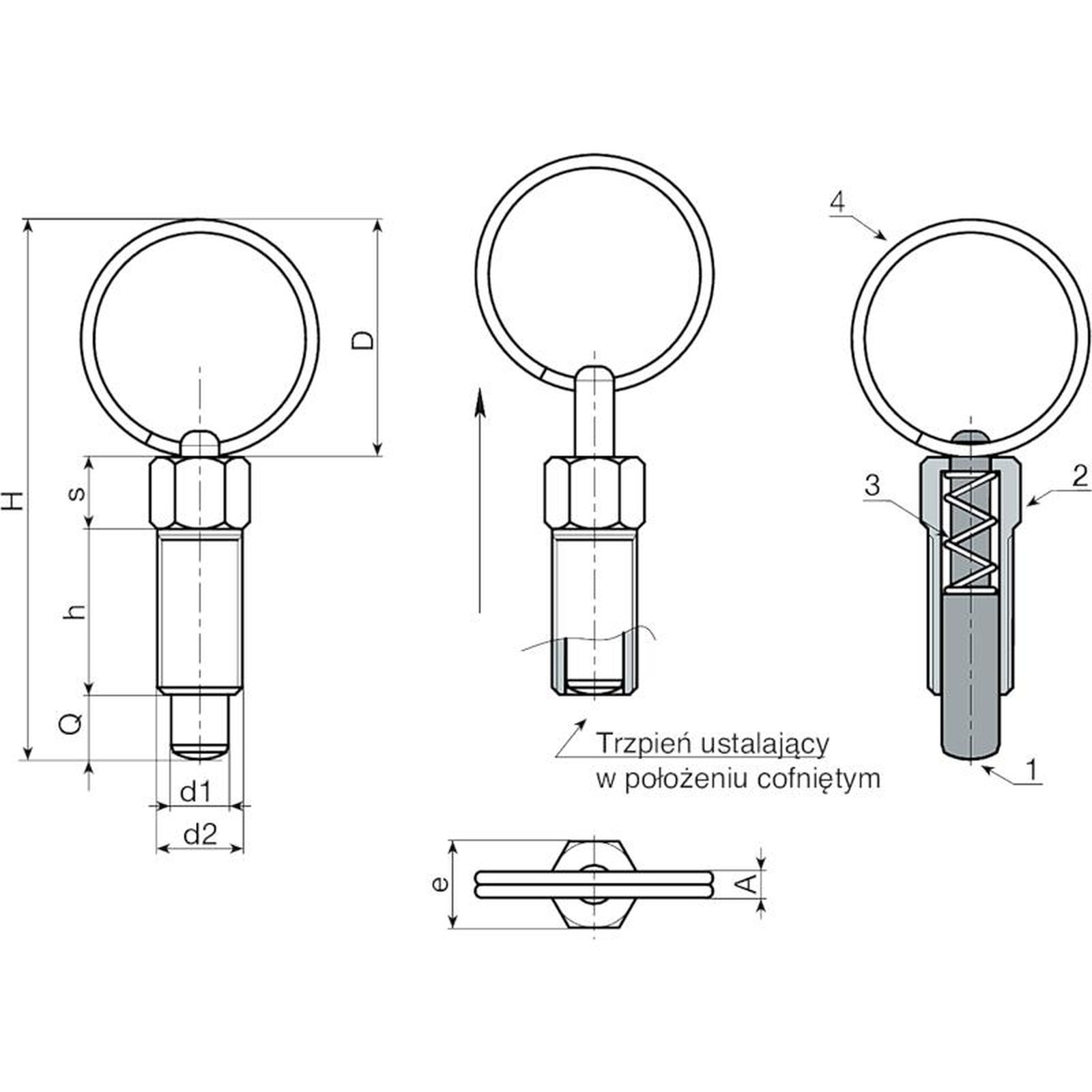 (2) Korpus gwintowanego trzpienia ustalającego ze stali inox (AISI 303).