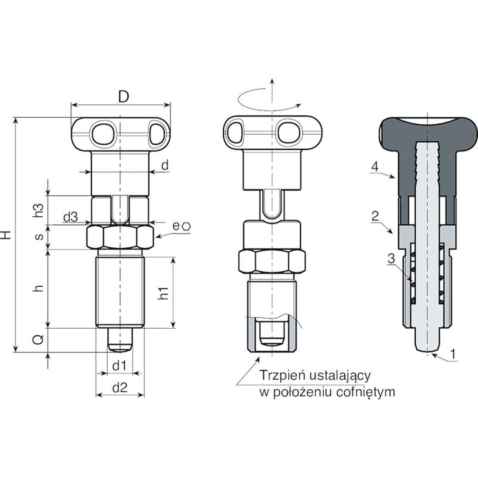 POKRĘTŁO Z GWINTOWANYM STALOWYM TRZPIENIEM USTALAJĄCYM Z BLOKADĄ