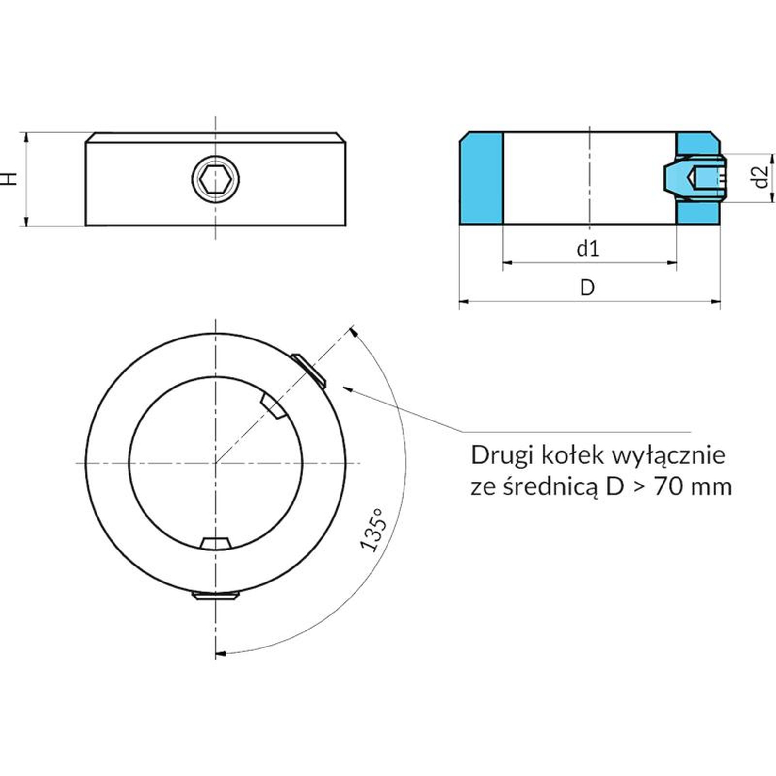 Drugi kołek jest dostarczany począwszy od średnicy D=>70 mm.