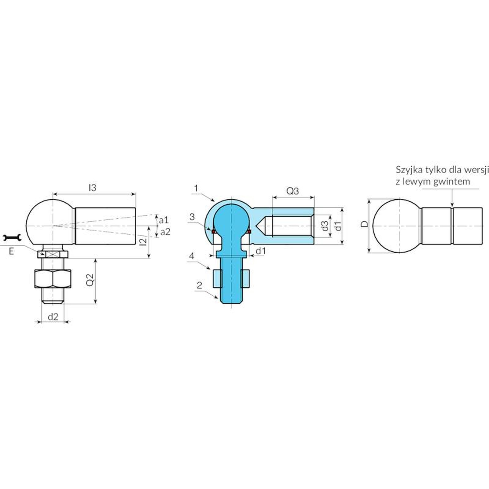 Wersja 718 - przegub z gwintem LEWOSKRĘTNYM