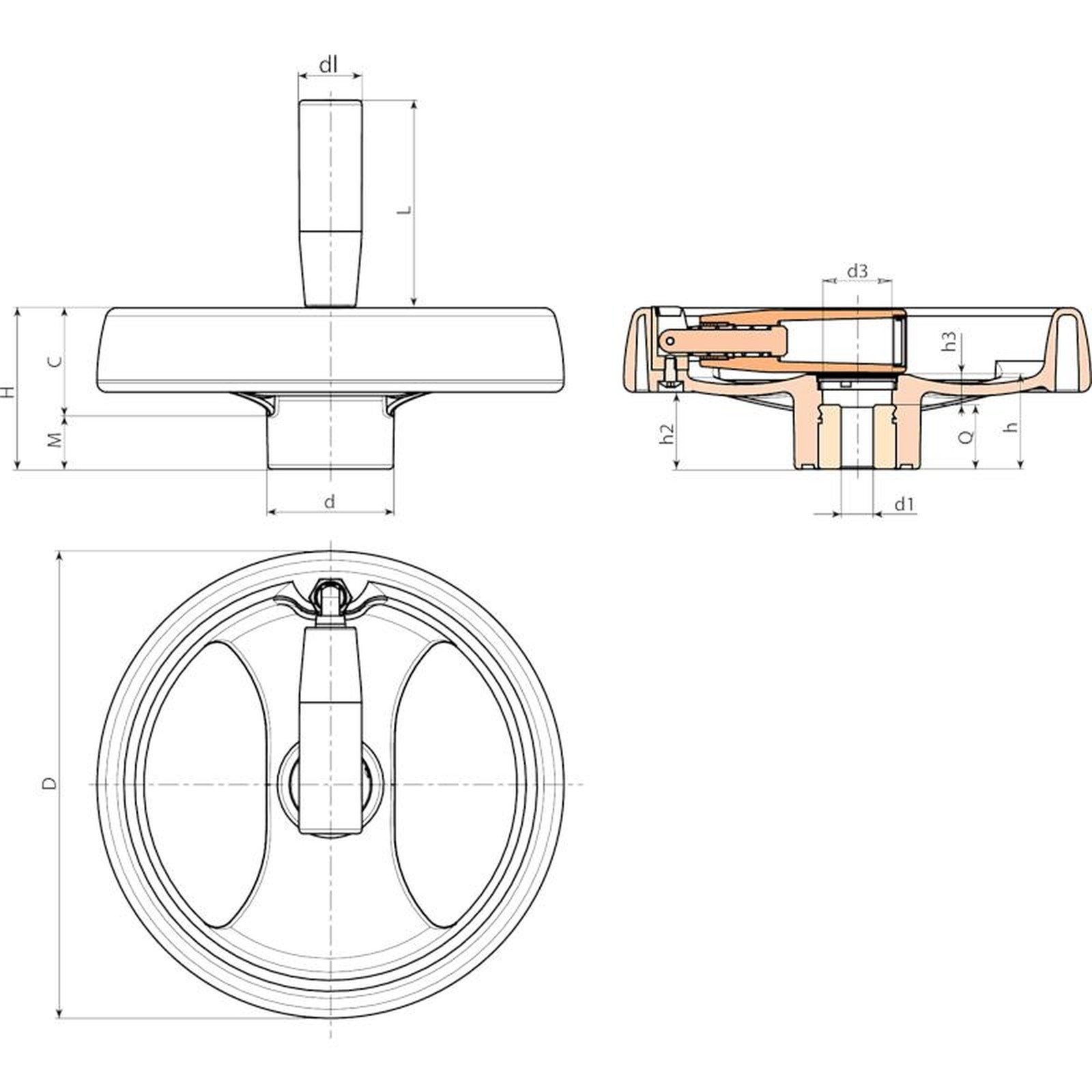 A pedido e por quantidade, cores da manivela com raios, do punho e do tampão (gama reduzida) conforme a tabela de cores.