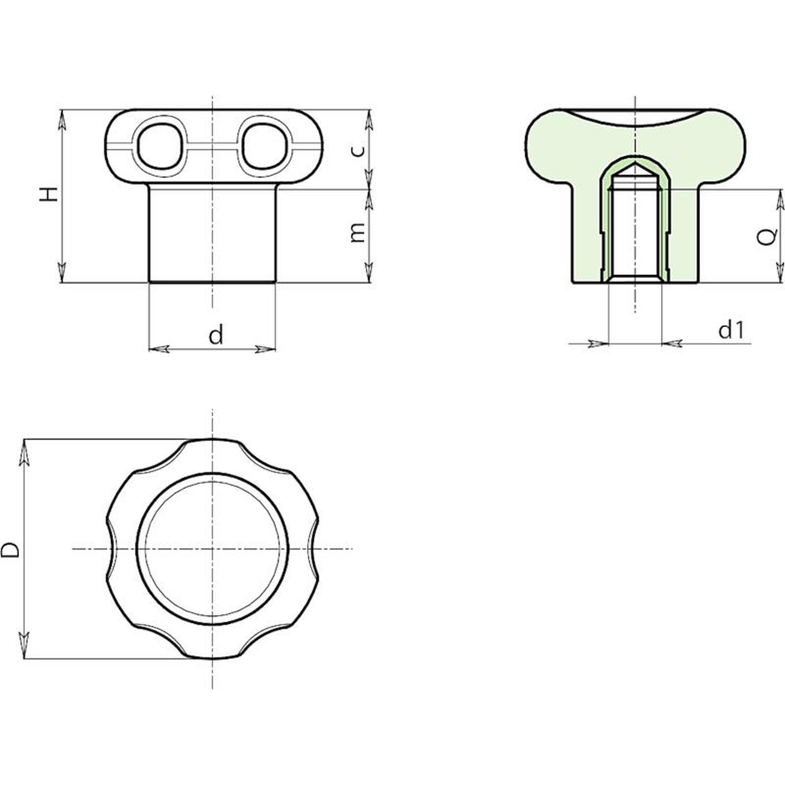 | Código | Art. | D | d | H | m | c | d1 6H | Q | Peso (g) |