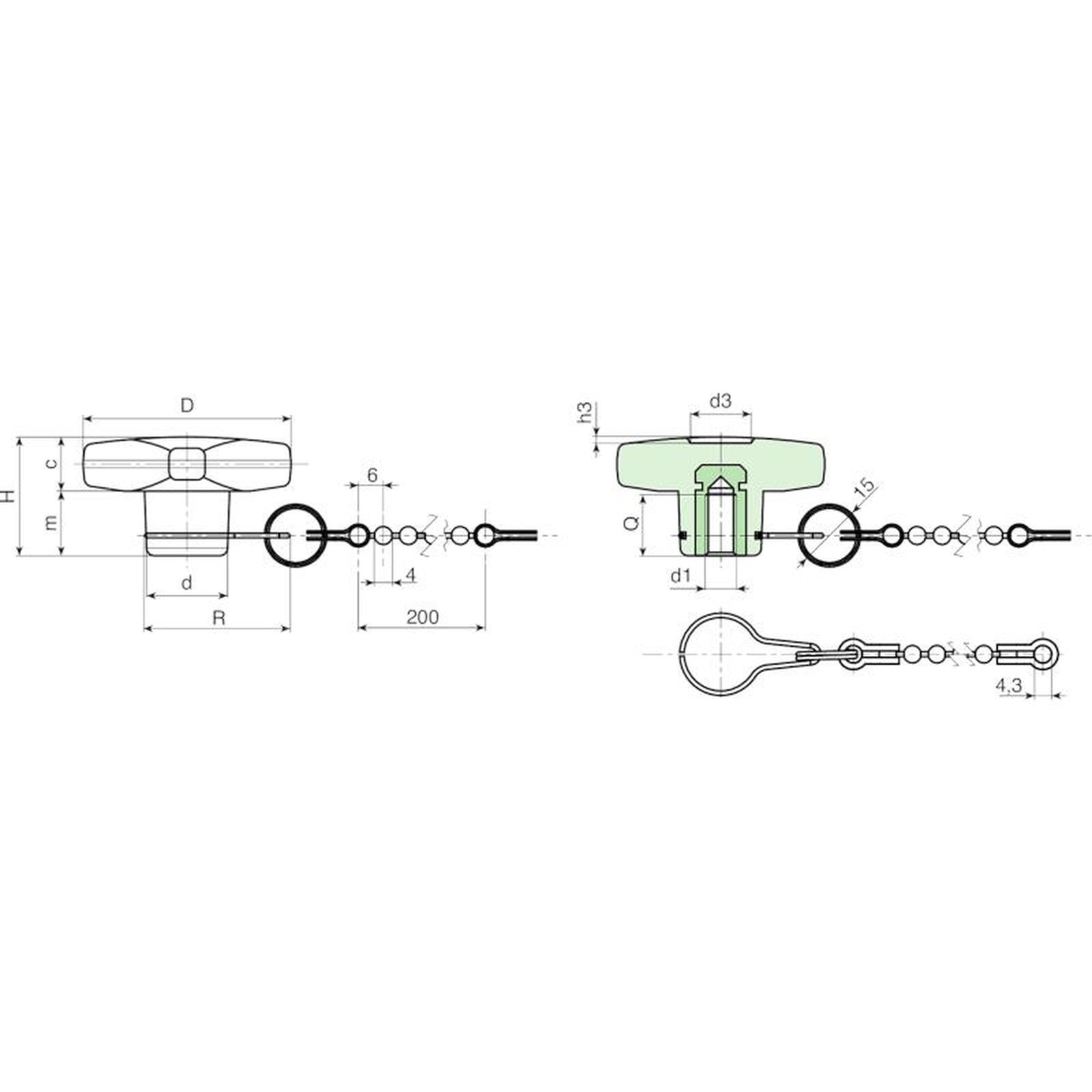 | Código | Art. | D | H | d | R | c | m | d3 | h3 | d1 6H | Q | Peso (g) |