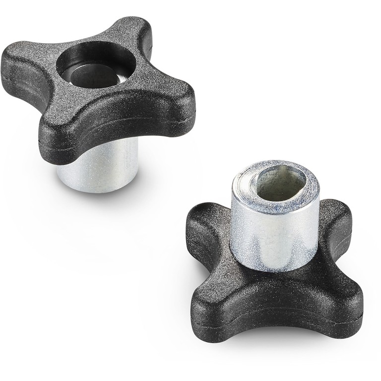 MANÍPULO EM CRUZ COM CUBO EM AÇO E FURO ROSCADO DE DESENGATE RÁPIDO