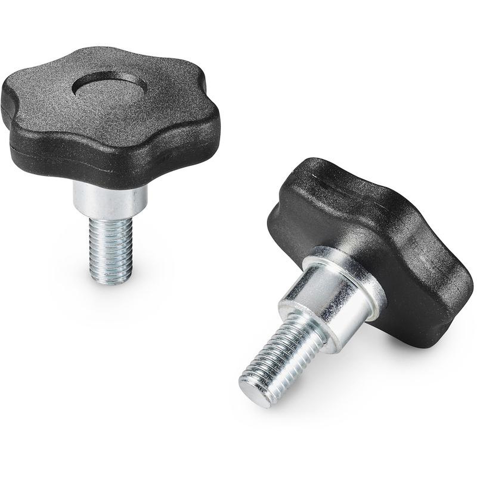 Casquilho com perno roscado em aço zincado (tolerância de rosca 6g).