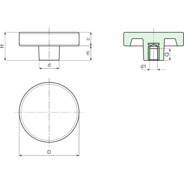 | Código | art. | D | H | d | c | m | Dm | d1 H10 | Q | Peso (g) |