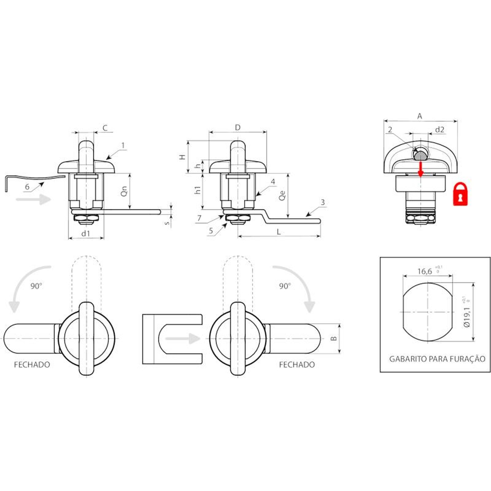 Fechaduras de 1/4 de volta M19