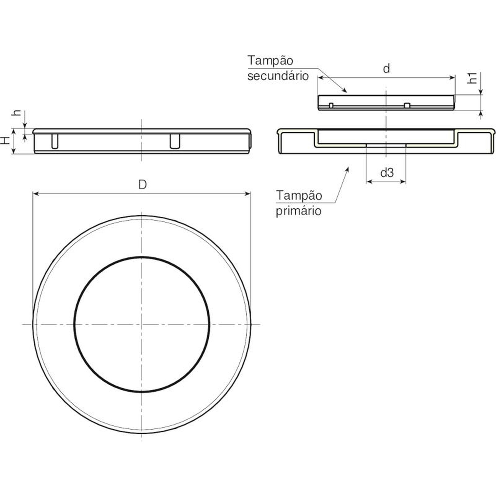 | Código | art. | D | d | d3 | H | h | h1 | Peso (g) |