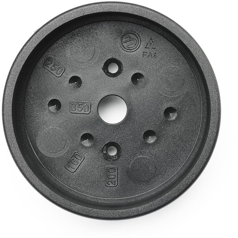 Um adaptador pode ser utilizado com mais manivelas com raios. Para a fixação, primeiro é preciso escolher o par de furos relativos ao diâmetro da manivela em uso (para facilitar, os diâmetros estão gravados ao lado de um dos dois furos); de seguida, deve-se tornar os furos passantes usando uma simples broca de berbequim d. 4,5. Atenção, o furo deve ser escareado para poder obter o alojamento para o parafuso de cabeça escareada. Os dois parafusos autoatarraxantes (TPS 4x16) são fornecidos com o adaptador. Como exemplo, no desenho ao lado estão representados os furos escareados obtidos em um K870.T8001 para uma manivela com raios Boteco de 200 mm de diâmetro.