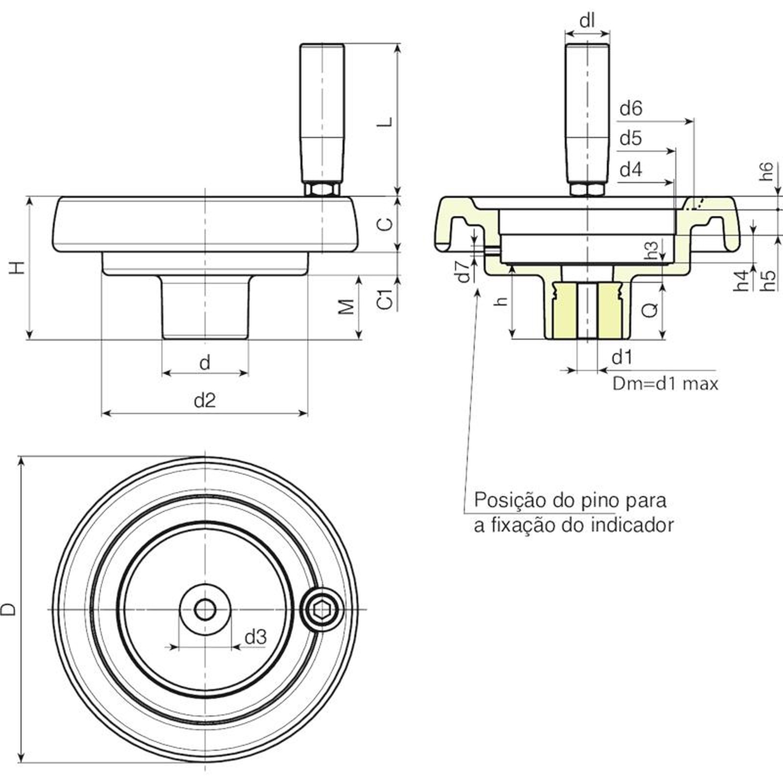 VOLANTE DE MANOBRA MACIÇO COM ALOJAMENTO PARA INDICADOR E PUNHO ROTATIVO