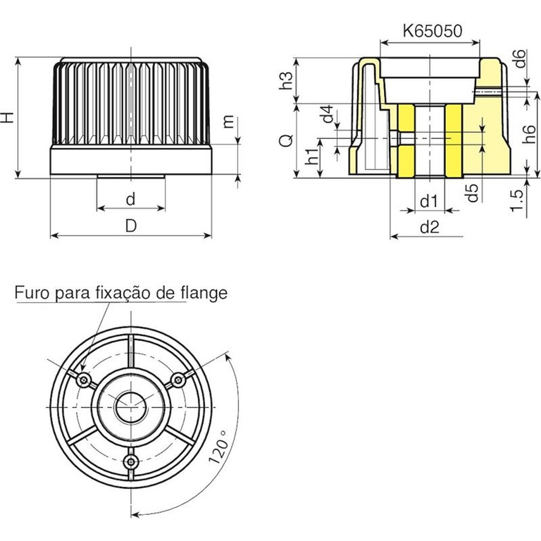 | Código | art. | D | H | m | d | d2 | d4 | d5 | d6 | h1 | h3 | h6 | Dm | d1 H10 | Q | Peso (g) |