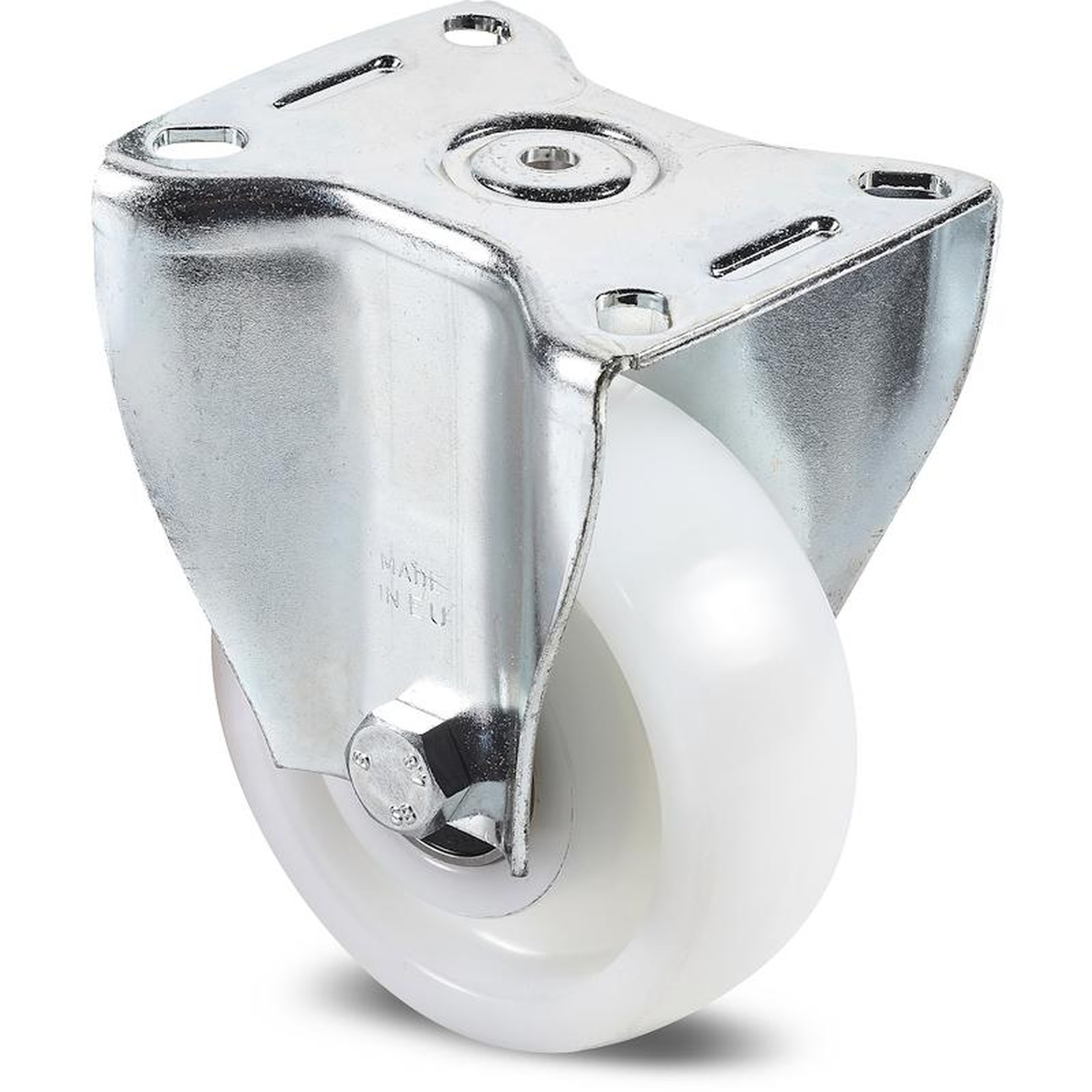 RODA MONOLÍTICA EM POLIAMIDA COM GARFO FIXO EM AÇO COM ROLAMENTO (CARGA PESADA)