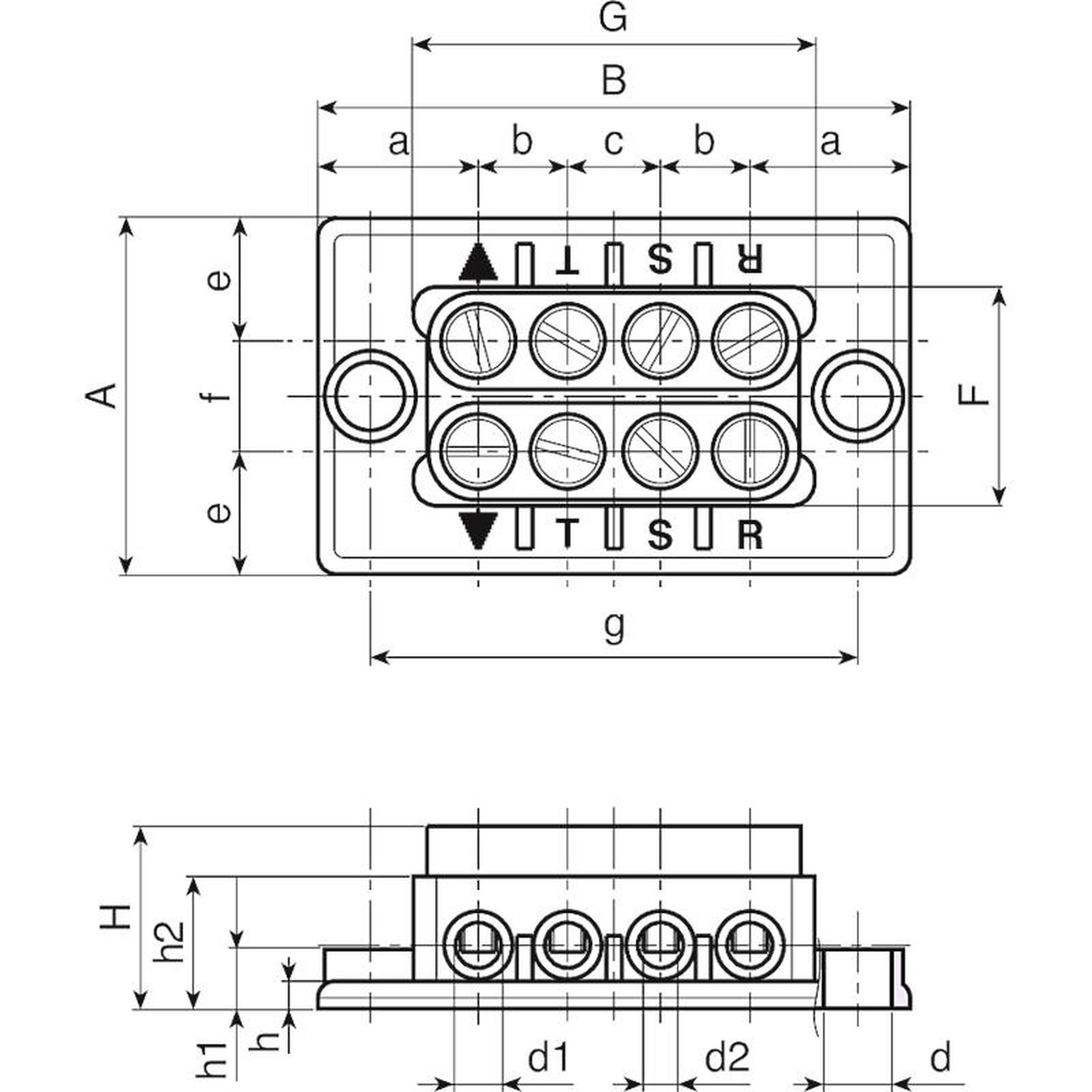 | Código | Art. | A | B | H | F | G | a | b | c | e | f | g | h | h1 | h2 | d | d1 | d2 | Peso (g) |
