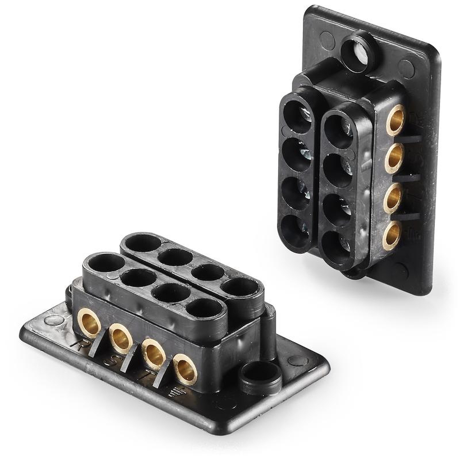 Casquilho furado e roscado em latão.