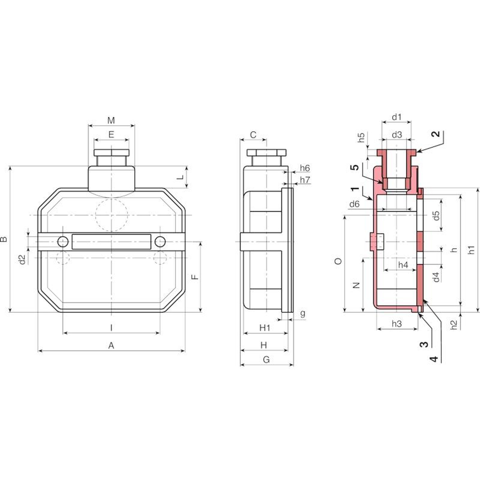 | Código | art. | A | B | C | E | F | G | H | H1 | I | L | M | N | O | d1 | d2 | d3 | d4 | d5 | d6 | g | h | h1 | h2 | h3 | h4 | h5 | h6 | h7 | Peso (g) |